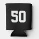 The man the myth the legend can cooler for men. Cute Birthday gift idea. Funny quote for over the hill dad on Birthday. Age specific humor for fiftieth Bday. Personalizable text and background color. Cosy gift idea for daddys manly man cave / mancave. Vintage masculine typography. Keeps beer cool for him. Mens sports humor. Doubles sided print. The man the myth the legend. Customizable background color. Fun present for fifty year old husband, uncle, grandpa, grandfather, stepdad, son, brother, guys etc. Custom age. Make your own for 30th 40th 50th 60th 70th 80th 90th Birthday. Black and white color.