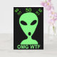OMG WTF Alien Humor Personalized Funny Happy 50th Birthday Card. Because Little Green Men get shocked too. Click the CUSTOMIZE THIS button to change the background color and/or personalize this with your initials, name or cute message. This Alien has a shocked expression with OMG WTF underneath to explain it. Fun for the Science Fiction buff or your favorite Ufologist... even though we all know that Little Green Men are actually gray.
