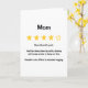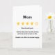 It's about time you gave feedback to your Mom for a change! This modern, funny Mother's Day card gives them 4 out of 5 stars due to their occasional nagging. Easily change the word Mom to Mum, Mother etc to suit you.