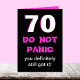 This milestone 70th birthday card was made for women. A big white 70 is edged in hot pink with a black background. The words "DO NOT PANIC" appear below and "you definitely still got it". If you open the card, you find the funny inside. Caution: This card should only be given to a woman with a good sense of humor! Copyright Kathy Henis