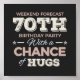 Funny 70th birthday sayings quote with humorous saying as Weekend Forecast 70th Birthday Party With A Chance Of Hugs. Happy 70th birthday for celebrating the birthday of your loved ones for example your grandma, grandpa, father, mother, uncle or aunt. Happy 70th birthday gift idea.