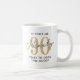 Funny 90th birthday mug featuring the humorous saying "it took me 90 years to look this good!" using a combination of black and a gold glitter font.