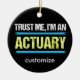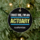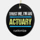 Trust Me, I'm an Actuary written in white and yellow writing with fun blue border on top and bottom. A funny gift for a mathematician who spends their life analyzing financial consequences and risks.