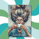 Funny birthday card with a funny comic book lady with big shocked eyes, a messy bun and a cup of coffee. Aging humor. I hope your birthday cake doesn't set off the fire alarm!
