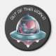 Bring a touch of cosmic creativity to your space with this fun magnet. Featuring a relaxed alien with its feet kicked up on the dashboard of its UFO, working on a laptop, and paired with the phrase “Out of this World”. This magnet is perfect for adding a bit of extraterrestrial flair to your fridge, locker, or any magnetic surface.