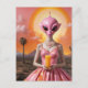 Funny Alien Lady With Orange Juice in Desert Postcard