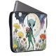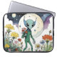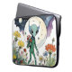 Funny Alien Picking Flowers With Full Moon Laptop Sleeve
