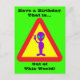 A Fun Birthday Postcard with a Silly Alien Theme! Complete with a purple caution sign and a funny message on the inside to bring a smile to the birthday celebration!. Personalize it with your message.