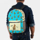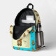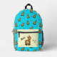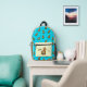 Backpack with funny alpaca on turquoise background