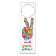 Need a little peace and quiet? Then place this funny hanger on your door to keep disturbances at bay. It features a hand making the peace sign while filled up with many colorful peace symbols.