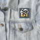 Funny angry disgruntled bird graphic illustration square pin back button. Background color can be customized.