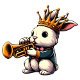 Step out in style with this hilariously regal graphic tee featuring the one and only Rabbit King! Our majestic bunny is depicted in full splendor, sporting a golden crown and blowing a mighty fanfare on his trumpet. It's the perfect blend of funny, fanciful, and a little bit funky.