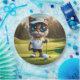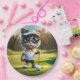 Pictured Dressed In Sunvisor, Shirt, Shoes, Ready To Play Golf Is A Funny Big Eyed Cat.
