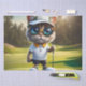 Pictured Dressed In Sunvisor, Shirt, Shoes, Ready To Play Golf Is A Funny Big Eyed Cat.