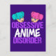 Obsessive Anime Disorder humor gift featuring two cute anime girls with teal and pink hair on top of funny obsessed text for a manga fan who loves Japanese animation. I'm addicted to anime.