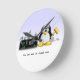 Funny Anti Daylight Saving Time Clock has picture of cute penguin holding a mallet beside a smoking broken digital clock. The digital clock's numbers have changed to read HELP. Underneath are the words You can set it ahead now. (For those that like clocks without numbers)