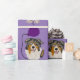Funny Australian Shepherd puppy dog is holding a purple balloon in this fun unique original art wrapping paper. Great for birthdays and celebrations.
