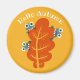 Cute autumn magnet with a cartoon illustration of three blue bugs with huge eyes who nibble on an autumnal orange leaf and the customisable text "Yellow Autumn". This seasonal artwork will appeal to a nature lover who likes funny cartoon characters and the season fall.
