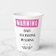 Celebrate the bride-to-be with these fun and bold bachelorette party paper cups! Featuring a hot pink "WARNING" sign and the cheeky phrase "Bad Decisions Pending," these cups are perfect for destination bachelorette parties, bach weekends in Cabo, or any last-fling-before-the-ring celebration. Customize the name and destination to match your squad's getaway.