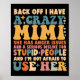 Funny mimi quote design: Back Off I Have A Crazy mimi She Has Anger Issues And A Serious Dislike For Stupid People And I Am Not Afraid To Use Her. Awesome tee with groovy saying, make your crazy mimi laugh, for kids, girls, boys, women, men, dad, aunt, mom, nephew, son, daughter, niece,.. Best family funny outfit for crazy mimi who loves funny jokes and quotes. Perfect sarcastic apparel for anyone who love his, her crazy mimi. for birthday, mother's day, women's day, parents day...