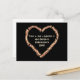 A funny heart of bacon on a black postcard with the wording "you + me + bacon = the perfect Valentine's Day!".