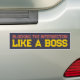 This funny bumper sticker is the perfect auto accessory for the bad driver in your family, workplace, or some random joker that can't play well in the sandbox with other motorists. "Blocking the intersection like a boss" is amusing as either a sarcastic prank or self effacing humor. Drive one home today!