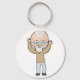 An funny bald man with his hands in the air. This design looks really effective on this Keychain