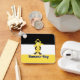 The key chain is made of metal and really sturdy. The flower design is really cheerful. The logo and colors are clear and crisp!