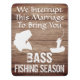 We interrupt this marriage to bring you BASS FISHING SEASON! Bass and fisherman in boat silhouette with vintage wooden planks in the background. Design by artist ©Tina Hesskew of Fishing Hunting Life.