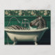 AI generated art of a beautiful zebra soaking in a clawfoot bathtub with green floral wallpaper in the background