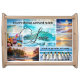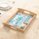 Serving tray featuring a photo grid with pictures of your own choice. A cheerful serving tray for a beach house or other situation.