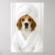Funny Beagle Bathroom Print, Beagle In Bathrobe Poster