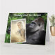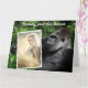 A gorilla holds a photo of your beauty on this fun beast and beauty card.