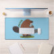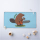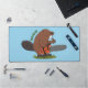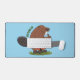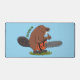 This happy beaver is ready to build his lodge with a chainsaw. Drawn in fun cartoon illustration style!