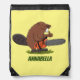 Funny beaver with chainsaw cartoon humor drawstring bag