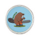 This happy beaver is ready to build his lodge with a chainsaw. Drawn in fun cartoon illustration style!
