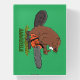 This happy beaver is ready to build his lodge with a chainsaw. Drawn in fun cartoon illustration style!