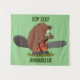 This happy beaver is ready to build his lodge with a chainsaw. Drawn in fun cartoon illustration style!