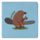 This happy beaver is ready to build his lodge with a chainsaw. Drawn in fun cartoon illustration style!
