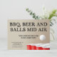 "BBQ, Beer & Balls Mid Air." A funny beer pong BBQ invitation for the bold and the buzzed. Perfect for a diaper party for the dad-to-be.