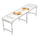 Not that I've had experience to buy that many beer pong or ping pong tables in my life, but I know a good quality product when I see it! This beer pong table is sturdy and solid and still lightweight enough to be portable. It folds and unfolds smoothly for easy storage or setup. From order to arrival here, the time was half of what was estimated, and that was during the holiday season. And -- most importantly -- the recipient LOVED it! I would definitely purchase this product again or other products by the maker Hampton Technologies , should an occasion to do so arise. The printing is beautiful! The blues and reds are deep and rich and the white "chalk look" is clean and crisp,. The photo (taken in low light) doesn't really do it justice. We know it's printed, but take a step back, and it really does look like chalk on a blackboard. To get the blue background like we did (instead of the traditional green chalkboard background), use background color #26306A. :)
