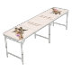 Not that I've had experience to buy that many beer pong or ping pong tables in my life, but I know a good quality product when I see it! This beer pong table is sturdy and solid and still lightweight enough to be portable. It folds and unfolds smoothly for easy storage or setup. From order to arrival here, the time was half of what was estimated, and that was during the holiday season. And -- most importantly -- the recipient LOVED it! I would definitely purchase this product again or other products by the maker Hampton Technologies , should an occasion to do so arise. The printing is beautiful! The blues and reds are deep and rich and the white "chalk look" is clean and crisp,. The photo (taken in low light) doesn't really do it justice. We know it's printed, but take a step back, and it really does look like chalk on a blackboard. To get the blue background like we did (instead of the traditional green chalkboard background), use background color #26306A. :)