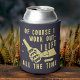 This funny foam beer can cooler / hugger / cozy shows a grungy image of a hand holding a cold beer bottle with the words, "Of Course I Work Out - I Lift Beer All the Time" done in a beige-yellow lager beer color. The background is dark blue but can be customized. The design repeats on the back.
