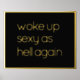 Beautiful, elegant, and simple real gold foil printed funny motivational Woke Up Sexy As Hell Again quote. This elegant, stylish, and trendy gold foil poster with a vintage, elegant, and chic minimalist typography script aesthetic is a perfect motivational, inspirational, and encouraging birthday gift.