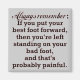 This funny demotivational / fake inspirational quote says, "Always remember: If you put your best foot forward, then you're left standing on your bad foot, and that's probably painful."