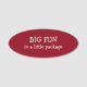Funny office name tags with humorous phrase Big Fun in a little package with white lettering on a bold and fun red badge color.