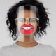 Face shield with a funny face with a big mouth with red lips for this trendy look.