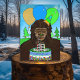 Sasquatch Birthday card. Funny Bigfoot humor. Hand drawn Bigfoot eating a birthday cake.