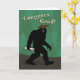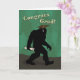 Funny Bigfoot graduation card features Sasquatch wearing a cap and holding a diploma in front of a forest of evergreen trees. Perfect for any person who believes in this mythical creature and urban legend.