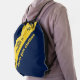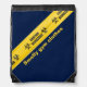 Fun drawstring backpack school gym bag done in dark blue, with graphics of yellow Bio Hazard warning tape. Bold yellow text reads Smelly gym clothes, and can be personalized to read what you want.